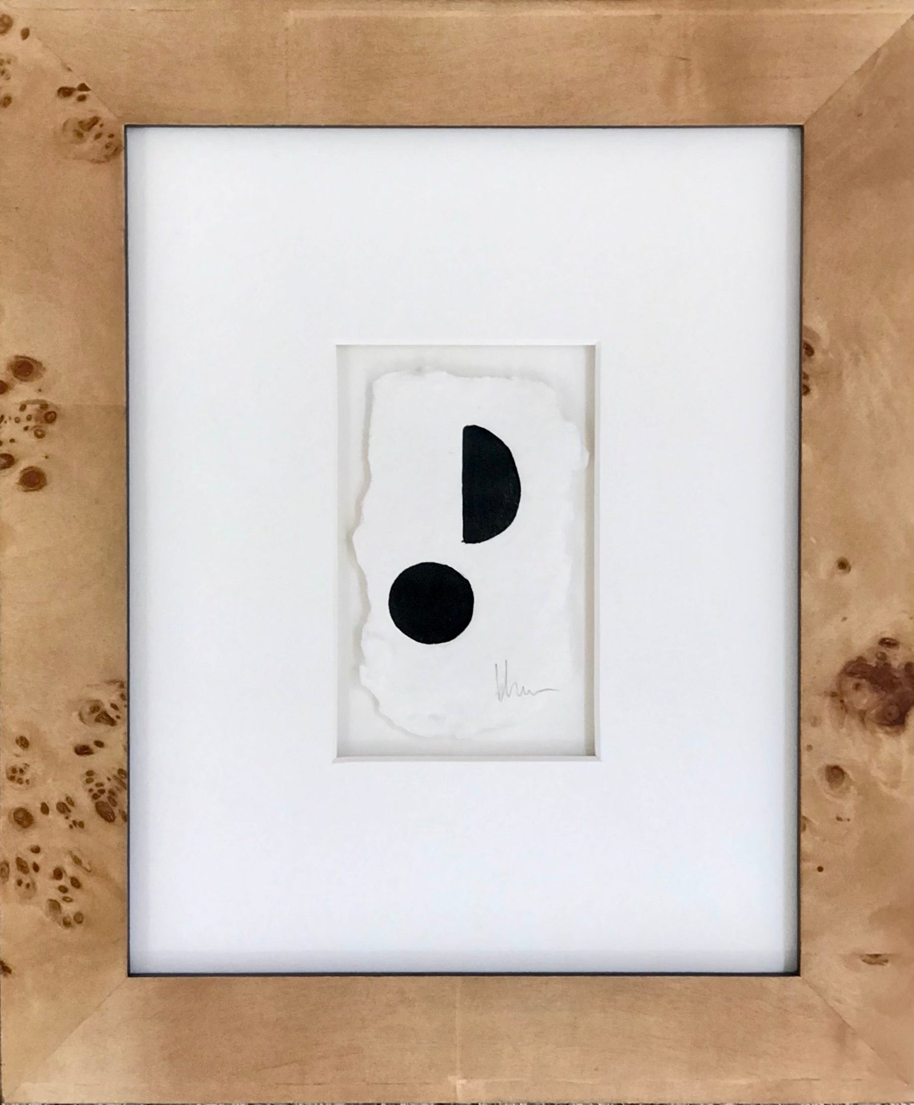 acrylic on handmade paper, in burl wood frame