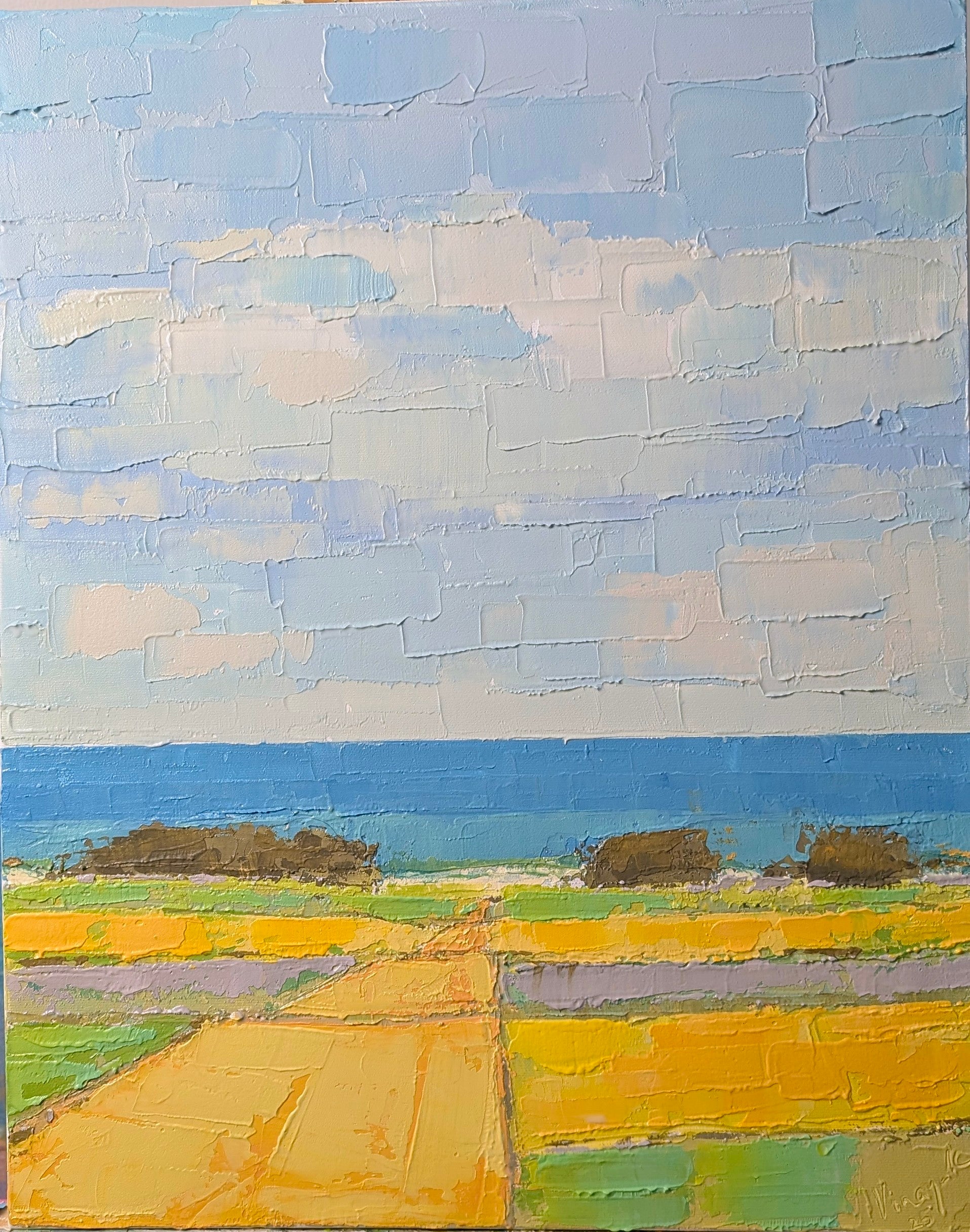 The central element in each of my paintings is the use of color. Nature and people serve as elements for my compositions. Composing flat components in muted, layered impasto blocks invites viewers to explore and discover happiness. I have always been curious about why people either like or dislike paintings. This curiosity led me to consider how feelings can be triggered by muted expressions. As a result, my compositions often convey a passive tone and gradually elicit a parasympathetic response. I began my art career by painting portraits on commission in the 1970s. I studied portrait and landscape painting at the Chitra Mandir Art Institute in India. In recent years, I have transitioned from oil and watercolor to acrylic and impasto styles, using palette knives to enhance texture and depth.