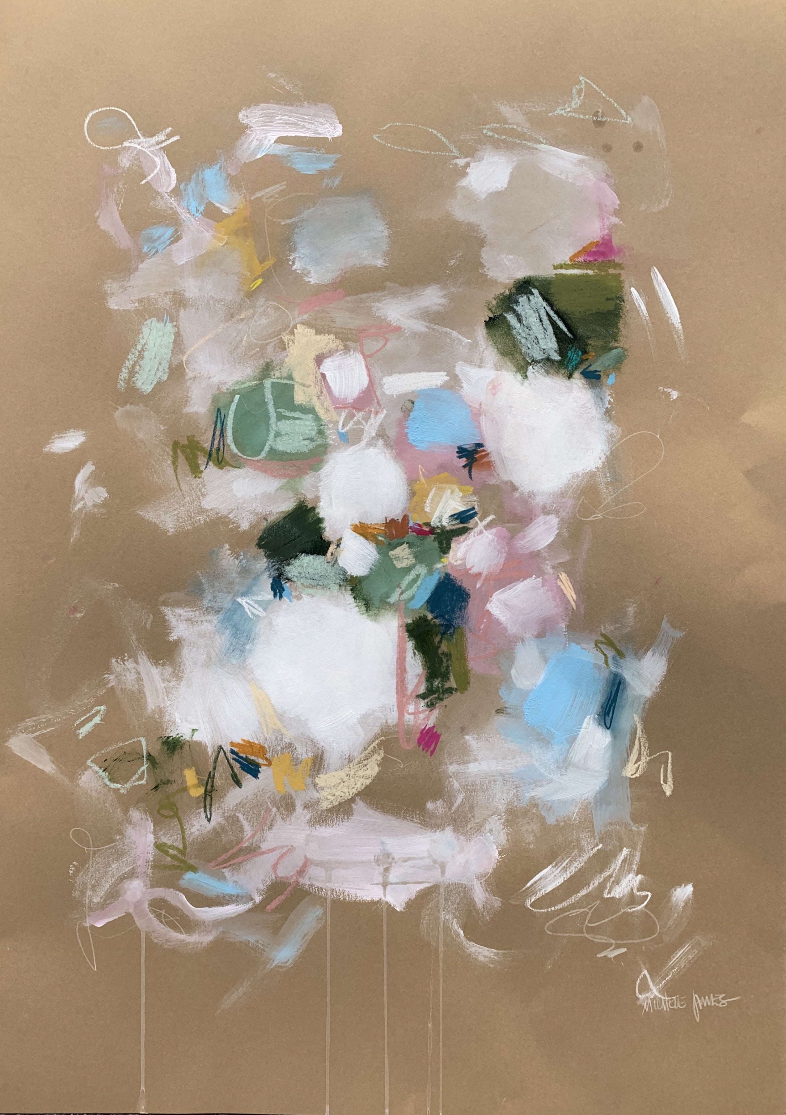 Michele James is an abstract painter known for her large works on canvas. She is inspired by color and movement and uses strong brushstroke and varied marks on neutral canvases with pops of bold colors. She paints with acrylics , and uses chalk, oil pastels and pencil to vary the texture and medium of her works. She is influenced by the colors in nature, the lightness and space of the sky, and the texture and depth of landscapes. “I love to make people happy and for a client to add my painting to their home is wonderful compliment” Michele received a BFA in fine art and art history at Hunter College in New York, NY with a concentration in studio painting. Michele paints out of her home studio in Atlanta where she lives with her husband and three kids.