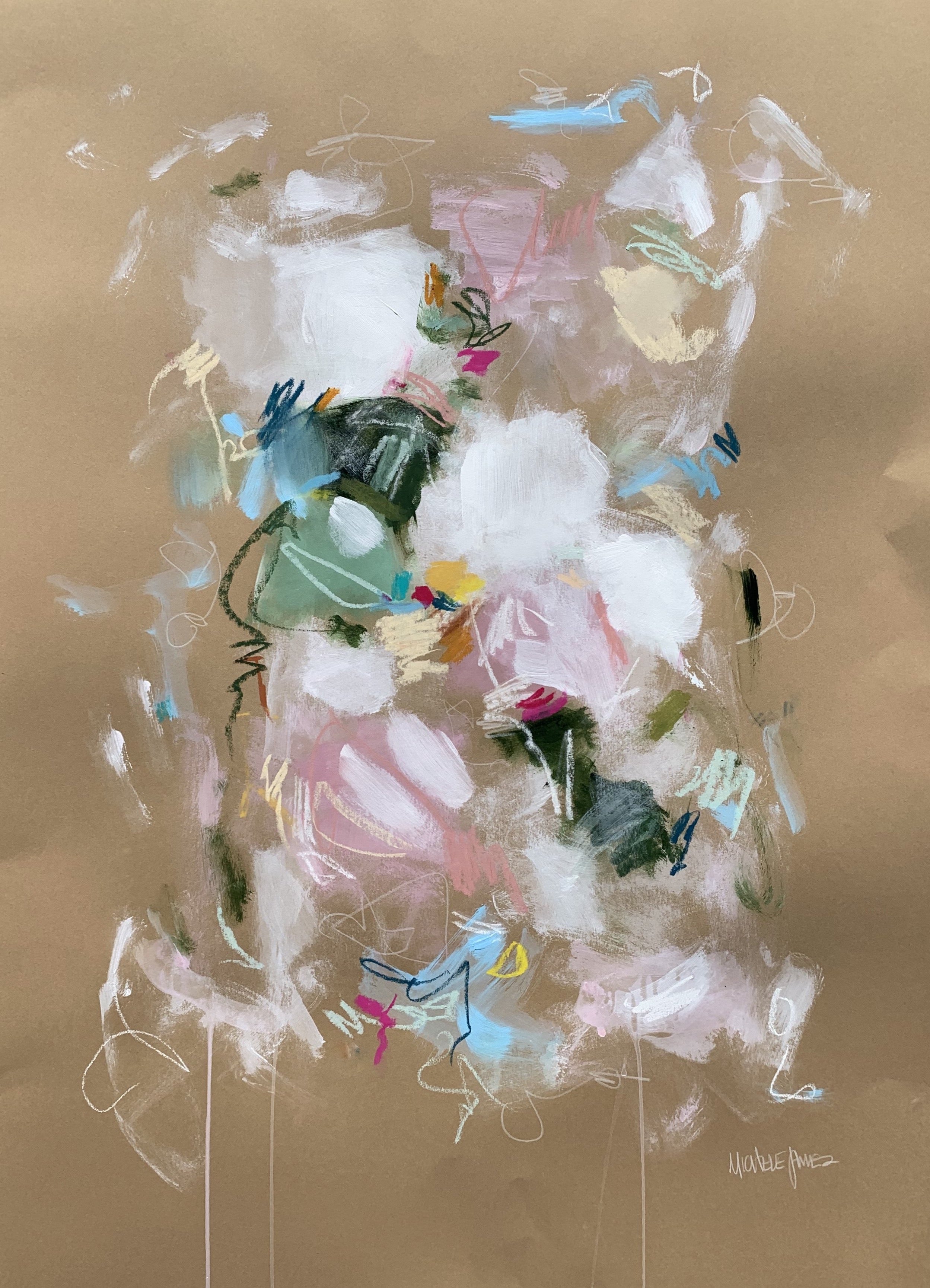 Michele James is an abstract painter known for her large works on canvas. She is inspired by color and movement and uses strong brushstroke and varied marks on neutral canvases with pops of bold colors. She paints with acrylics , and uses chalk, oil pastels and pencil to vary the texture and medium of her works. She is influenced by the colors in nature, the lightness and space of the sky, and the texture and depth of landscapes. “I love to make people happy and for a client to add my painting to their home is wonderful compliment” Michele received a BFA in fine art and art history at Hunter College in New York, NY with a concentration in studio painting. Michele paints out of her home studio in Atlanta where she lives with her husband and three kids.