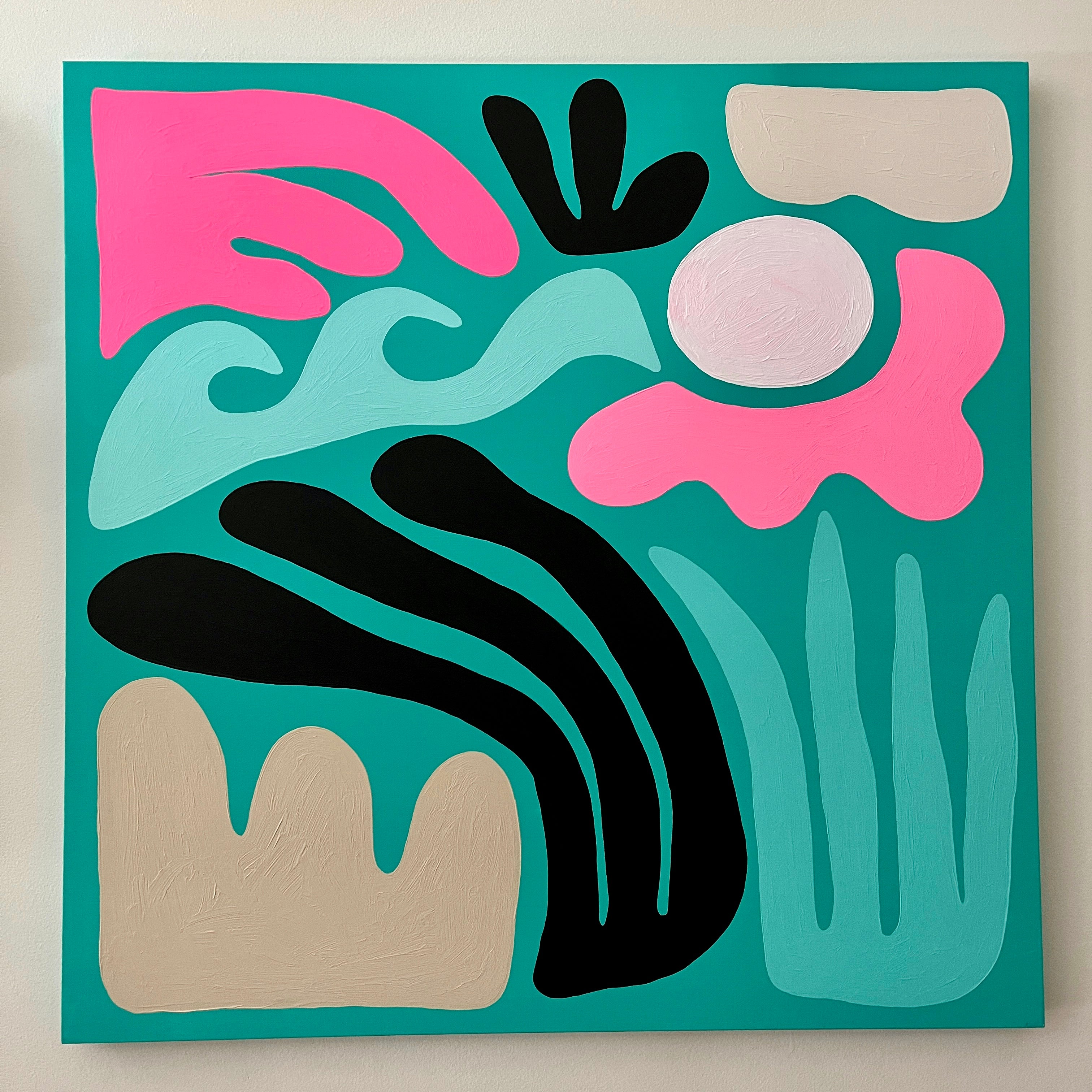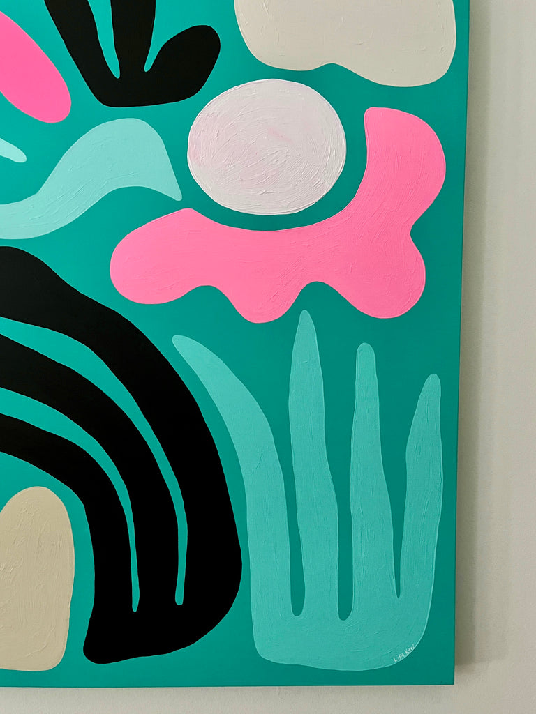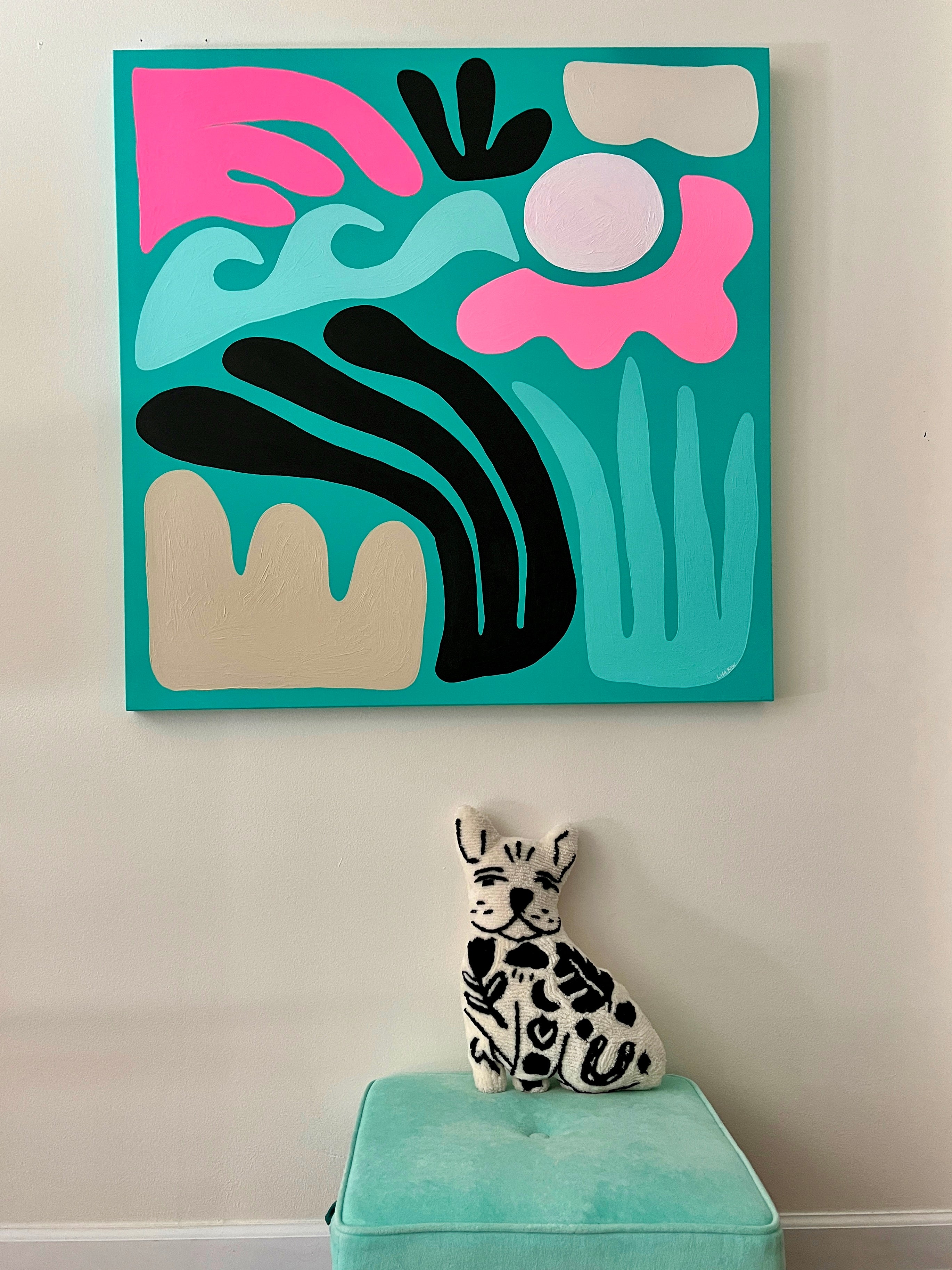 Totally tropical Lisa Kaw shares her love for nature and travel through her vibrant paintings. From her South Florida jungalow, she uses acrylic on canvas to transform the beauty around her into tangible one of a kind treasures. A minimalist at heart, Lisa thrives best when surrounded only by the blues and greens of the natural world and the curious melody of the rainforest chatter. Bali and the Big Island of Hawaii are her most sacred visited places. With a playful palette and a joyful spirit, Lisa Kaw creates work that simply and purely communicates the wonder of our natural world.