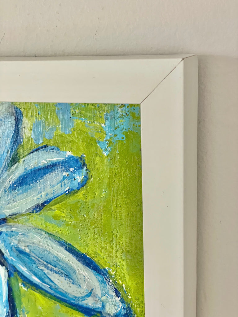 oil on wood, in white frame