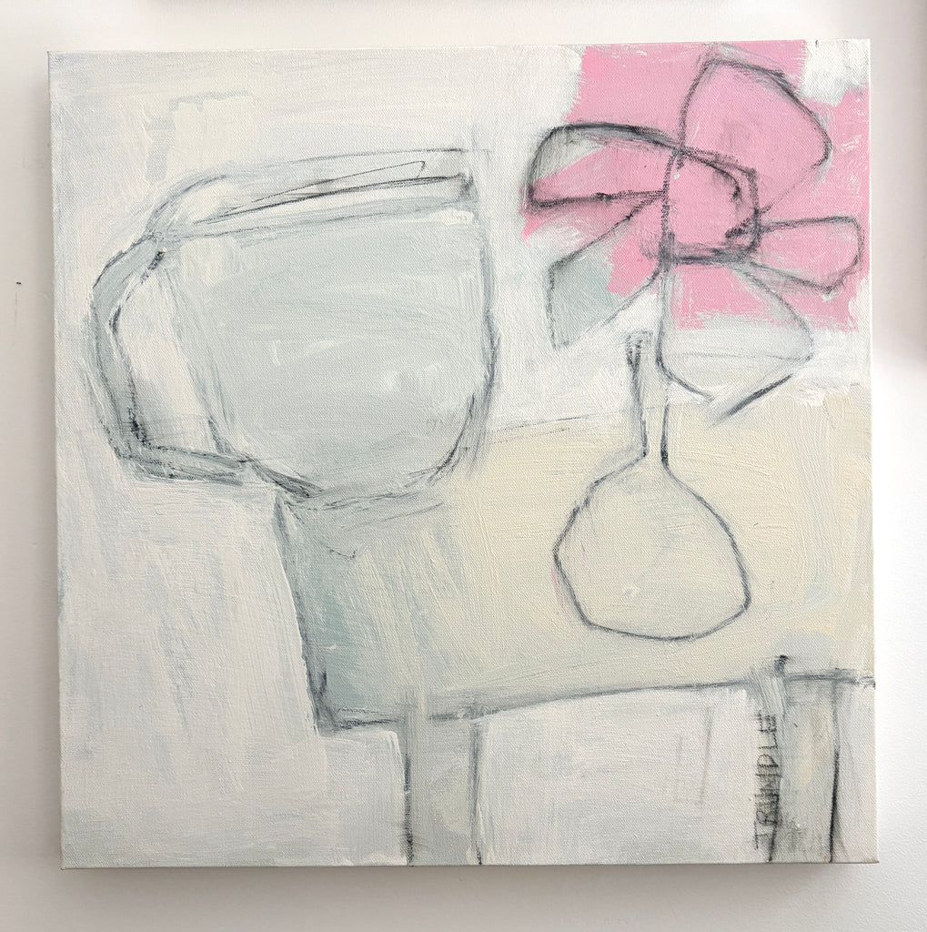 Sarah Trundle is a Charlottesville, Va. painter working primarily in abstraction. Decisive mark-marking, bold, geometric shapes, and a simplicity of form, line, and color, are the hallmarks of Sarah's paintings. She sees every painting as a constantly evolving and shifting process, often starting a piece without any fixed vision of an end product. Her approach is one of constantly obscuring and re-defining, of ongoing layering, scraping, covering, wiping, scratching, and generally moving paint and materials around to ultimately achieve the final balance of shape and color that gives her that "aha" moment.