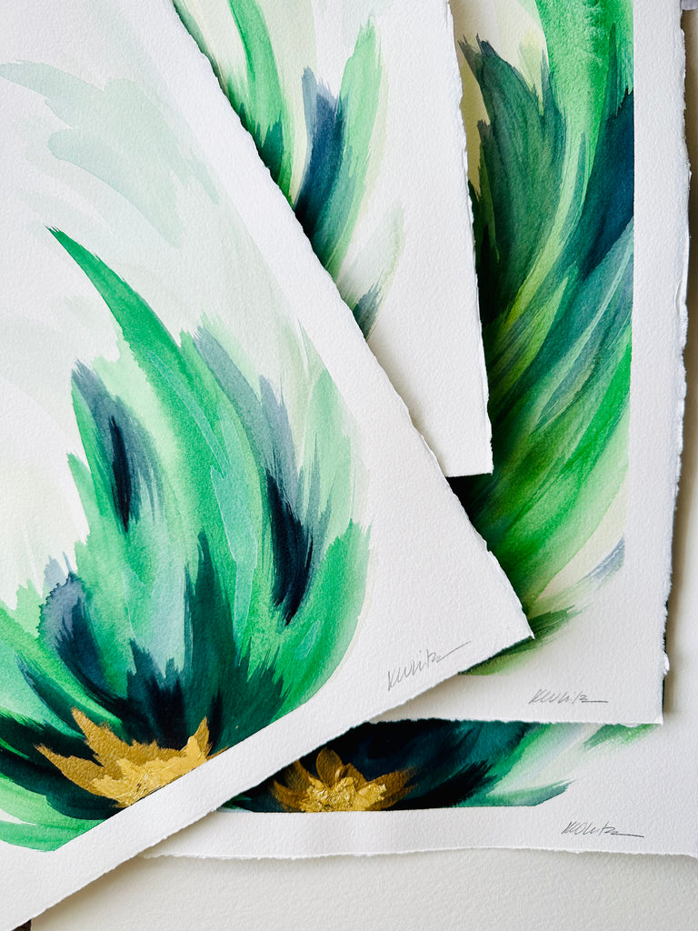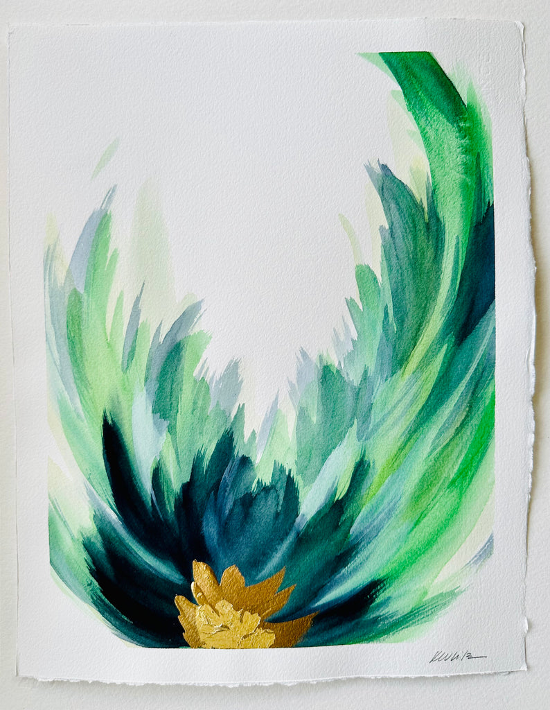 My art is heavily inspired by nature. Each creation takes on its own life, much like nature does when it unfolds. Many of my pieces greet you with a soft, serene atmosphere evoking a peaceful emotion, while others pull you in with the bold colors, telling their own story. I am drawn to the horizon line, the space where land or water meet the sky, a quiet pause at the end of the day as the sun sets, a deep exhale, or a place to root yourself to the earth. It reminds me of how important it is to stay grounded in the world we live in today. I received my BFA in Illustration from Washington University in St. Louis. I taught elementary art for many years and have been a professional artist for the past 5 years. In addition to my studio practice, I lead watercolor workshops and retreats. This work allows me to connect with women, teaching them how to use the medium as a tool to ease anxiety. My painting practice is what grounds me daily. I love sharing with others how to set intentions and being mindful with their own creativity.