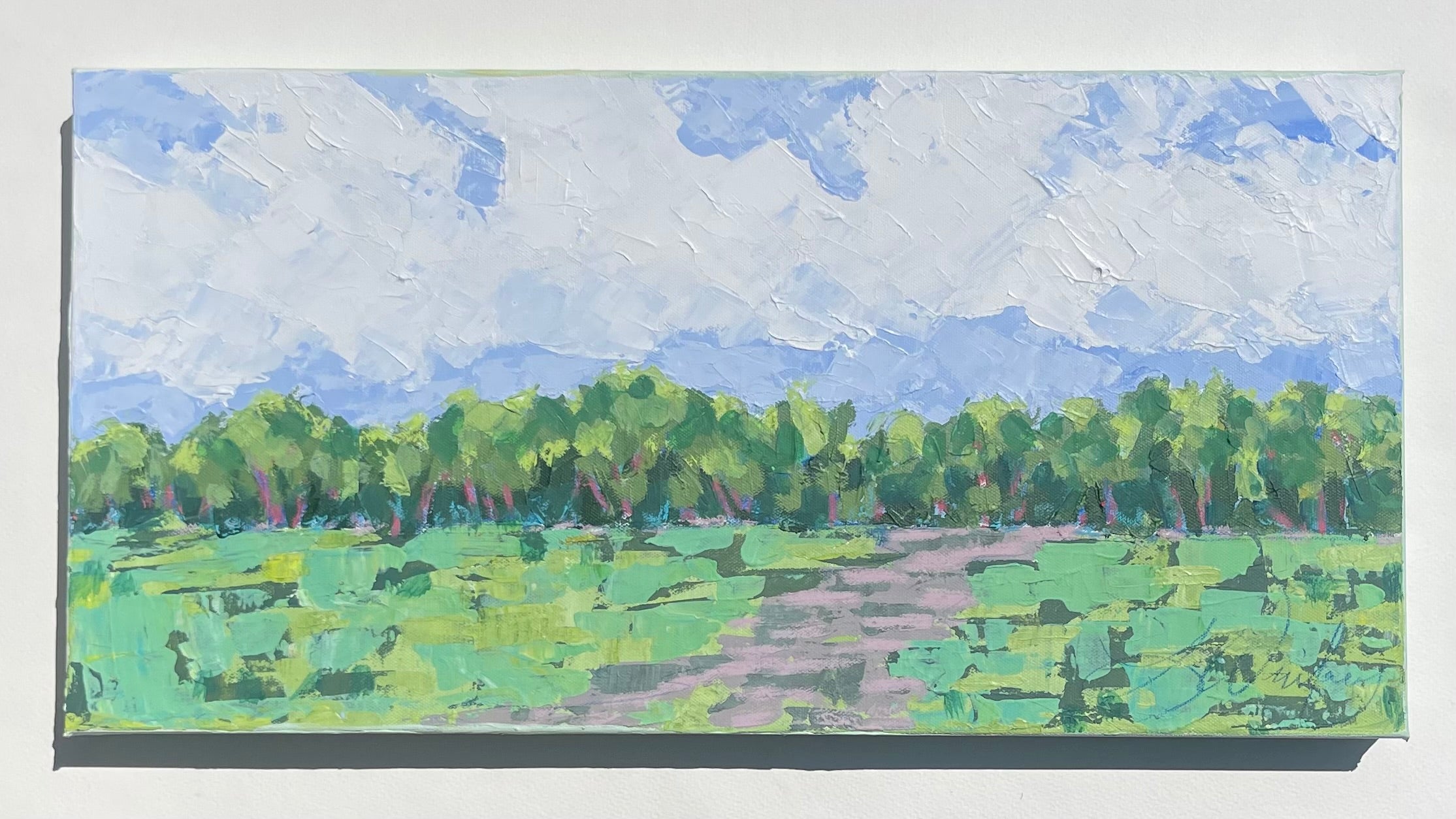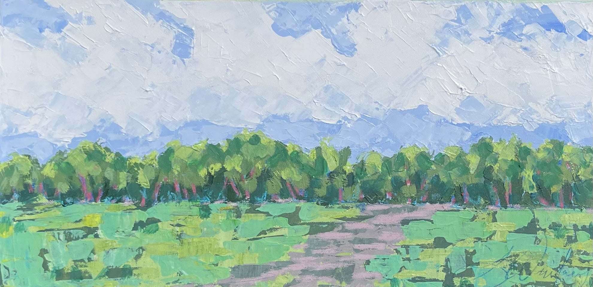 Lindsey’s paintings are an escape and journey - a time to relish the process of creativity: the brush strokes, the layers, the juxtaposition of colors. She works primarily with acrylic paints for their intensity of color and the ability to layer and create textures with various acrylic mediums and gels. A native of Lynchburg, Virginia, Lindsey’s landscapes generally focus on special places that she has known all her life, including fields at the foot of the Blue Ridge Mountains and the pristine beauty of the Cowpasture River. Working from onsite sketches and photographs, she mixes observations with her own personal memories and feelings of how she perceives a place. In addition to being an artist, Lindsey is a full-time art educator, wife, and mother of two young children.