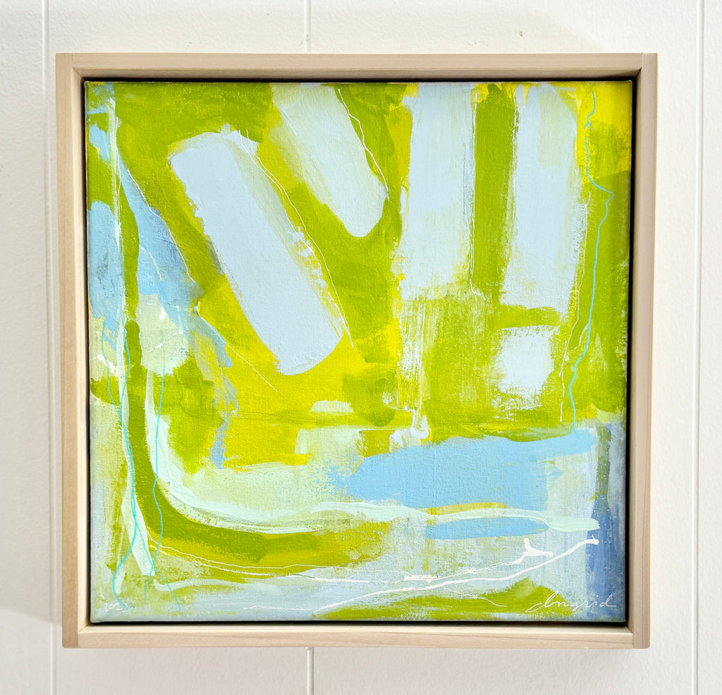 Ingrid’s contemporary art is an unexpected mix of various materials in arrangements of linear planes of bright colors and complexity. Her artwork is inspired by the clean lines of her Scandinavian upbringing, the bright colorful influences of her lifelong love of the ocean and her participation in the urban subculture of NYC in the 80s. She received her formal art education at The School of Visual Arts in NYC, while her free form street art evolved in the explosive vibrant Rivington School art scene on the Lower East Side of Manhattan. Her work has been in numerous NYC galleries and shows in NYC on the 80s. Ingrid also studied at Pepperdine University, Tyler School of Art in Rome, intensive studies in London, and fine art classes while living on an island in Finland for 7 years. A mother of two and all avid surfers, she enjoys time with her family and stays involved with The Surfrider Foundation, a non-profit environmental organization protecting waters and beaches. Her pieces bring light and life into any space.