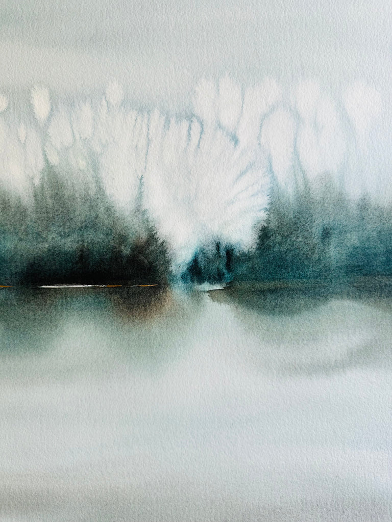 My art is heavily inspired by nature. Each creation takes on its own life, much like nature does when it unfolds. Many of my pieces greet you with a soft, serene atmosphere evoking a peaceful emotion, while others pull you in with the bold colors, telling their own story. I am drawn to the horizon line, the space where land or water meet the sky, a quiet pause at the end of the day as the sun sets, a deep exhale, or a place to root yourself to the earth. It reminds me of how important it is to stay grounded in the world we live in today.​ I received my BFA in Illustration from Washington University in St. Louis. I taught elementary art for many years and have been a professional artist for the past 5 years. In addition to my studio practice, I lead watercolor workshops and retreats. This work allows me to connect with women, teaching them how to use the medium as a tool to ease anxiety. My painting practice is what grounds me daily. I love sharing with others how to set intentions and being mindful with their own creativity.