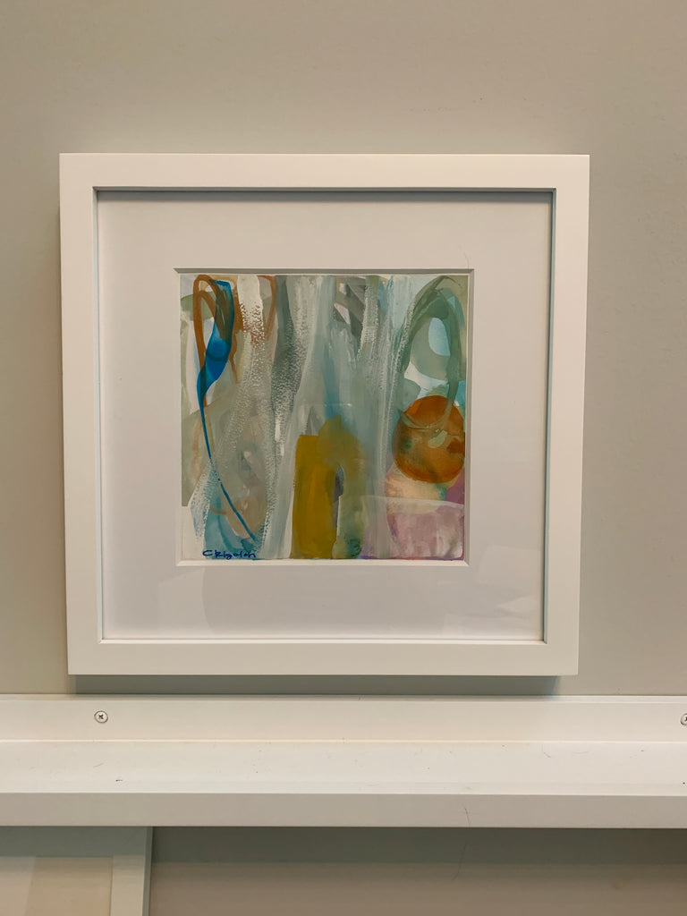 I find ultimate freedom in abstract expressionism and as such, I’m in search of the best way to convey who I am at the moment of creating. It is not to say it is a free-for-all; there is still structure within. I implement the same principles that realist painters employ with the absence of representation: composition, hierarchy, variety, juxtaposition are vital to a successful painting. But I do not limit myself to one medium or the other. I work in oil, acrylics and gouache and depending on what I’m exploring at the time I will choose one or more to express it. I also explore through a combination of paint and collage. It is through all of these various methods and mediums that I am able to share my fullest expression of self and my authenticity. My paintings ultimately are self portraits that are created from both past experiences and also future hopes and dreams. It is my goal to invoke a feeling for the viewer. When it does I have succeede