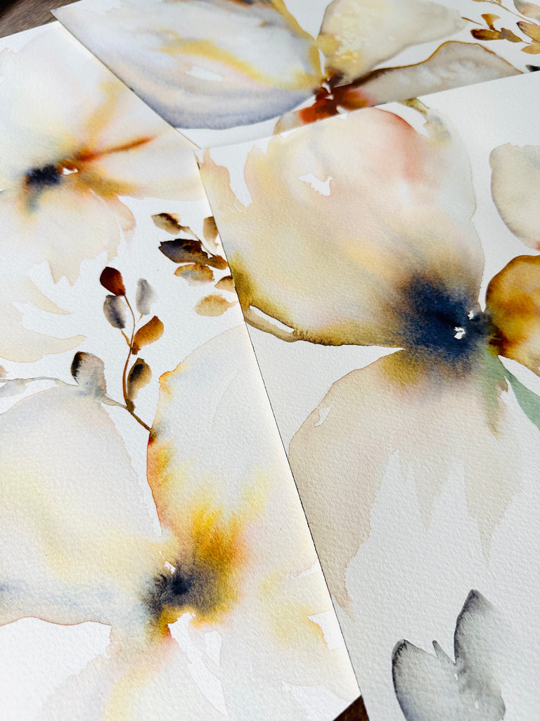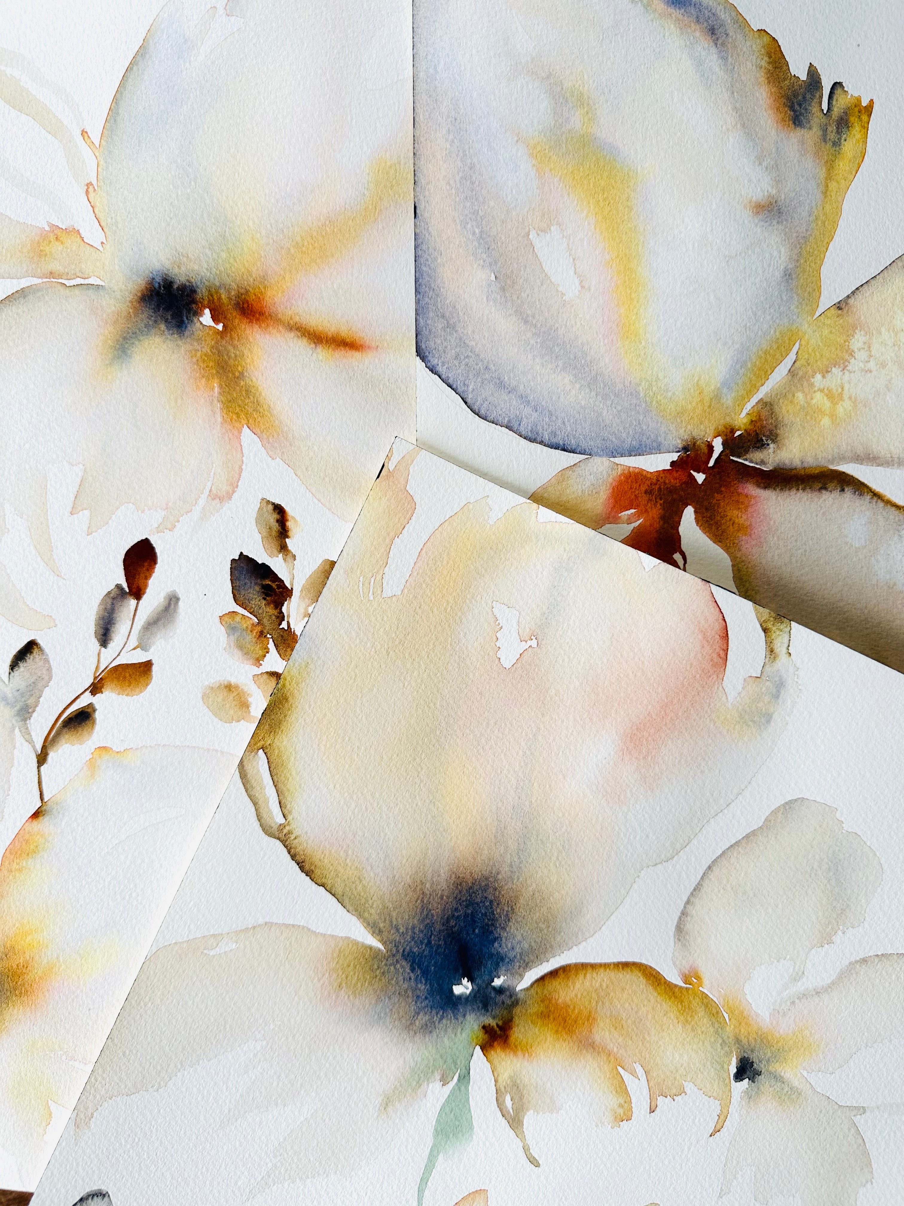 My art is heavily inspired by nature. Each creation takes on its own life, much like nature does when it unfolds. Many of my pieces greet you with a soft, serene atmosphere evoking a peaceful emotion, while others pull you in with the bold colors, telling their own story. I am drawn to the horizon line, the space where land or water meet the sky, a quiet pause at the end of the day as the sun sets, a deep exhale, or a place to root yourself to the earth. It reminds me of how important it is to stay grounded in the world we live in today.​ I received my BFA in Illustration from Washington University in St. Louis. I taught elementary art for many years and have been a professional artist for the past 5 years. In addition to my studio practice, I lead watercolor workshops and retreats. This work allows me to connect with women, teaching them how to use the medium as a tool to ease anxiety. My painting practice is what grounds me daily. I love sharing with others how to set intentions and being mindful with their own creativity.