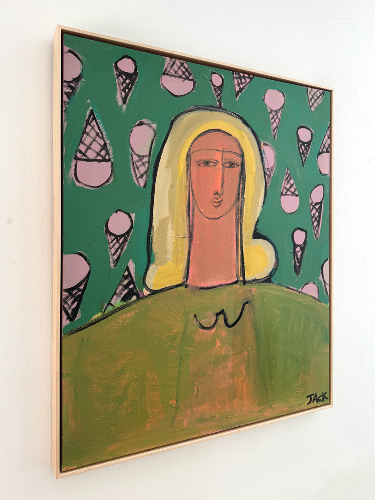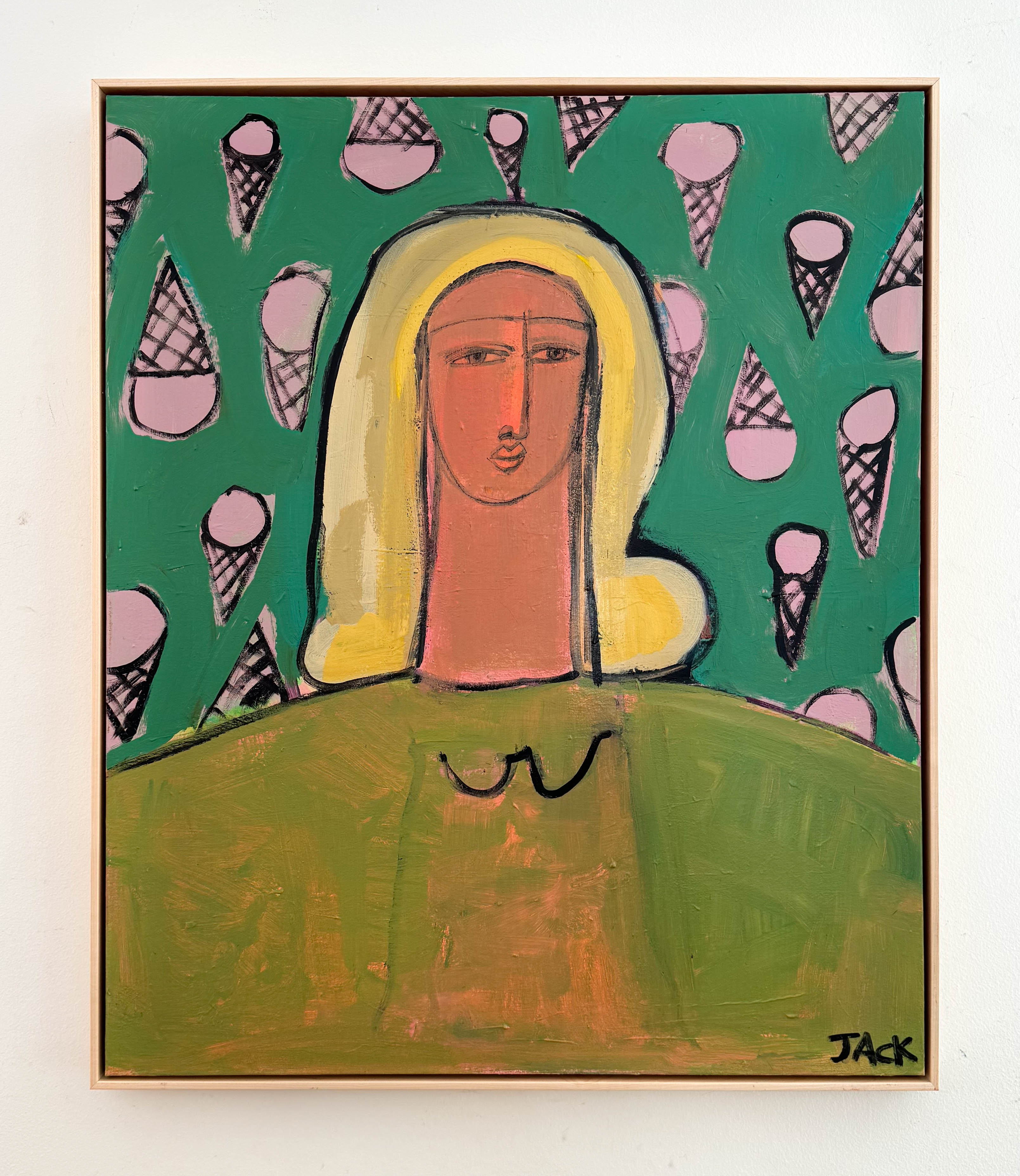 An intuitive artist, Rebecca Jack, paints vibrant figurative works that highlight the beauty of imperfection through visible layering, expressive brush work and mark making. Her figures are boldly unapologetic yet exude a quiet confidence and self-reflective quality. Originally from Knoxville, Tennessee, Jack grew up in an artistic household where she has been painting and drawing all her life. She received her bachelor’s degree at the University of Tennessee in Interior Design. Drawing from her love of design, Jack is inspired by color, pattern, shape and contrast. She is currently living in Atlanta with her husband and son.